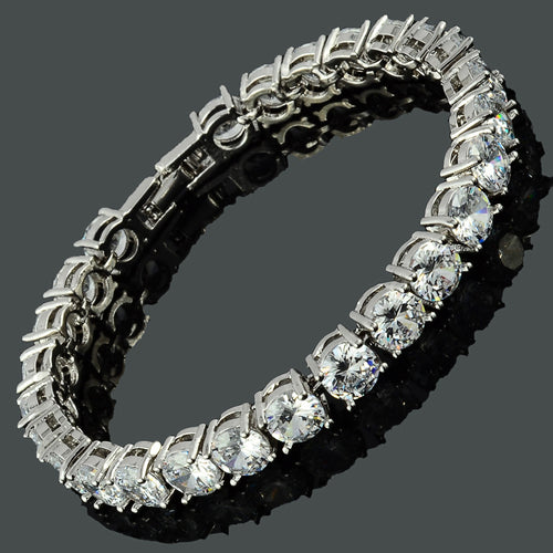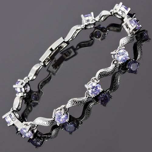 RIZILIA Round Multi-Color CZ Birthstone White Gold Plated Tennis Bracelet, 7"