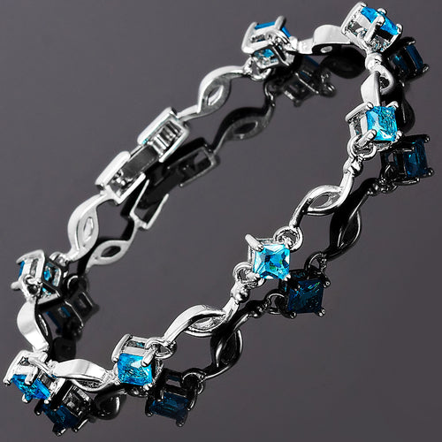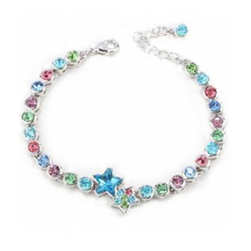 RIZILIA Stars Adjustable Tennis Bracelet & Star Cut Crystal [Simulated Aquamarine] in White Gold Plated, Simple Modern Elegant