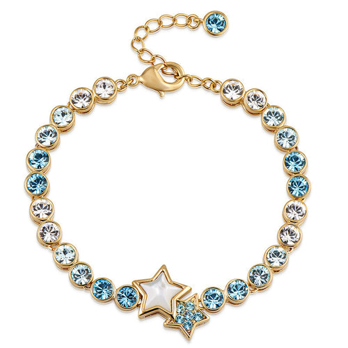 RIZILIA Stars Adjustable Tennis Bracelet & Star Cut Crystal [Simulated Aquamarine] in Yellow Gold Plated, Simple Modern Elegant