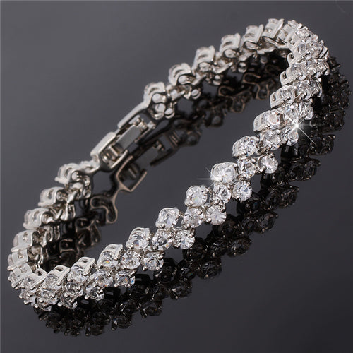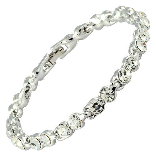 RIZILIA Tennis Bracelet & Round Cut CZ [White Cubic Zirconia] in White Gold Plated, 7"