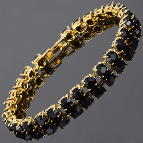 RIZILIA Tennis Bracelet & Square Cut CZ [Simulated Black Onyx] in Yellow Gold Plated, 7"