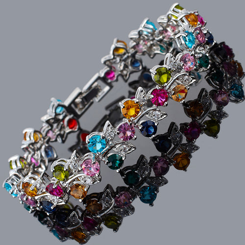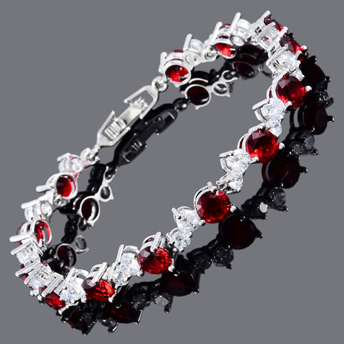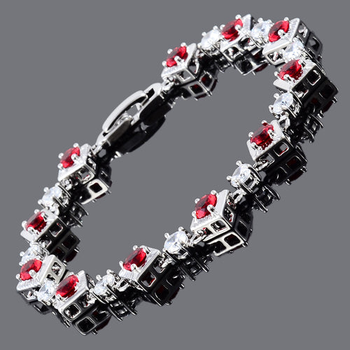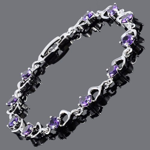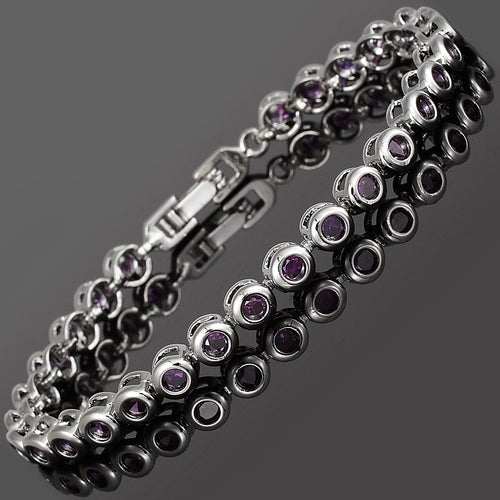 RIZILIA Tennis Bracelet & Round Cut CZ [5 Colors Available] in White Gold Plated, 7"