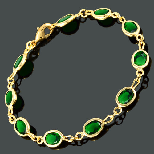 RIZILIA Tennis Bracelet with Oval Cut CZ [6 Colors Available] in Yellow Gold Plated, 7"