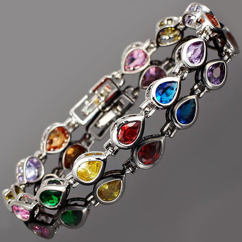 RIZILIA Pear Cut Multi-Color CZ 18K Gold Plated Tennis Bracelet, 7"