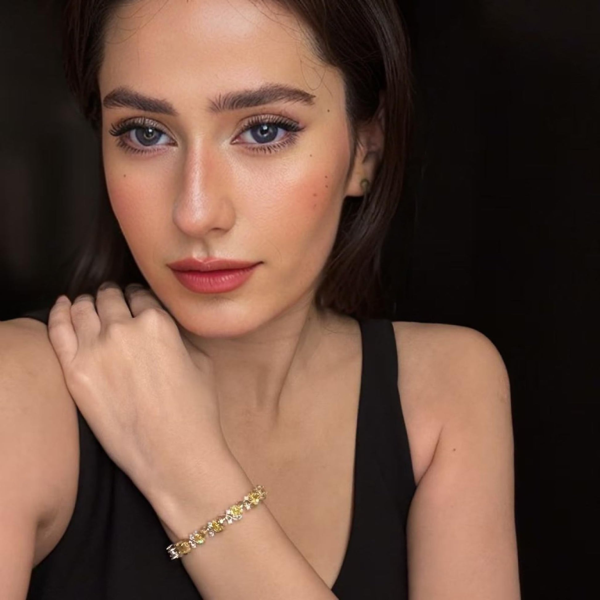 RIZILIA BLOSSOM Tennis Bracelet & Round Cut CZ [6 Colors available] in Yellow Gold Plated, 7"