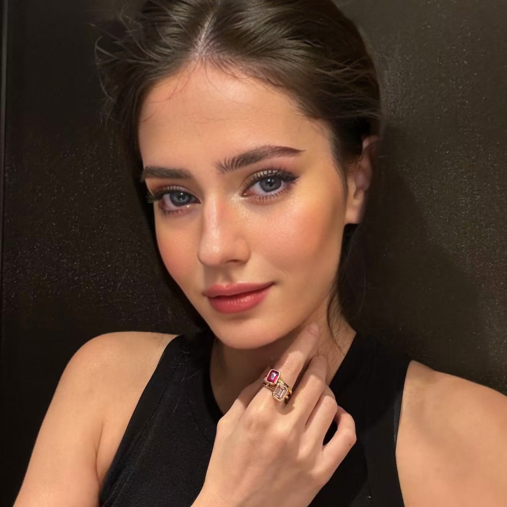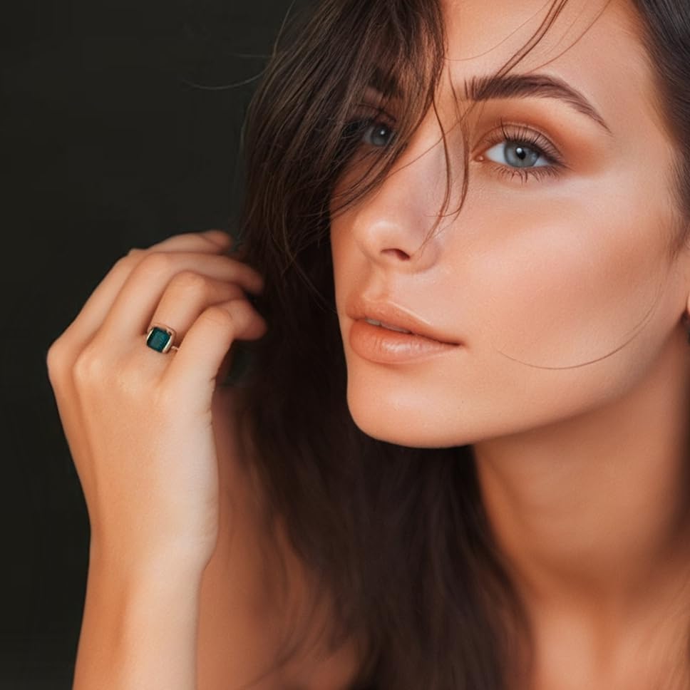 - [CeleBox - Celebrity inspired Jewellery Box] Angelina Jolie's green Oscars ring is a statement piece not to be forgotten. Angelina Jolie wore a Colombian emerald ring, weighing a total of 65 carats that captivated jewelry lovers the world over. Inspired by Angelina Jolie, we introduce various pear gemstone colours most strikingly paired. Design is simple, modern, elegant.