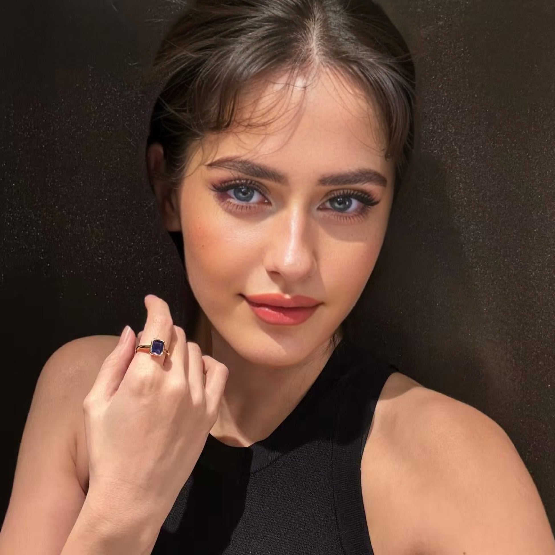 - [Metal and Gemstones]: Environmentally friendly brass (NICKEL FREE) with 18K Yellow Gold Plated. Simulated Blue Sapphire (September Birthstone) are used. Main gemstone size is 9mmx7mmx1(2.62ct)