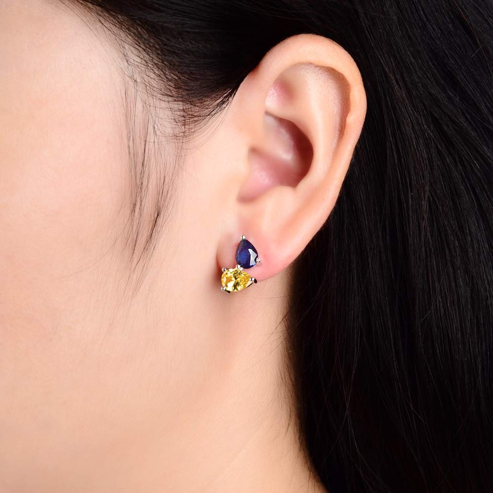 - [Metal and Gemstones]: Environmentally friendly brass (NICKEL FREE) with 18K White Gold Plated. Simulated Blue Sapphire&Yellow Citrine are used. Main gemstone size is 7mmx5mmx1