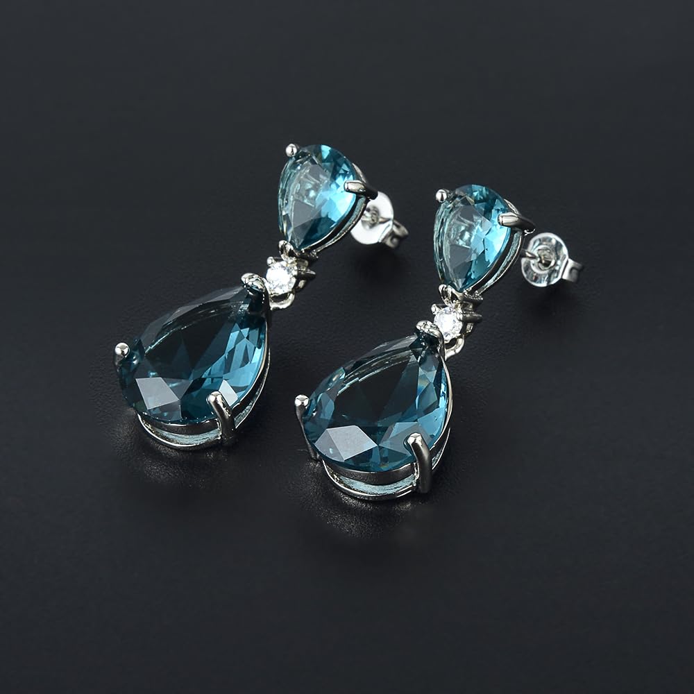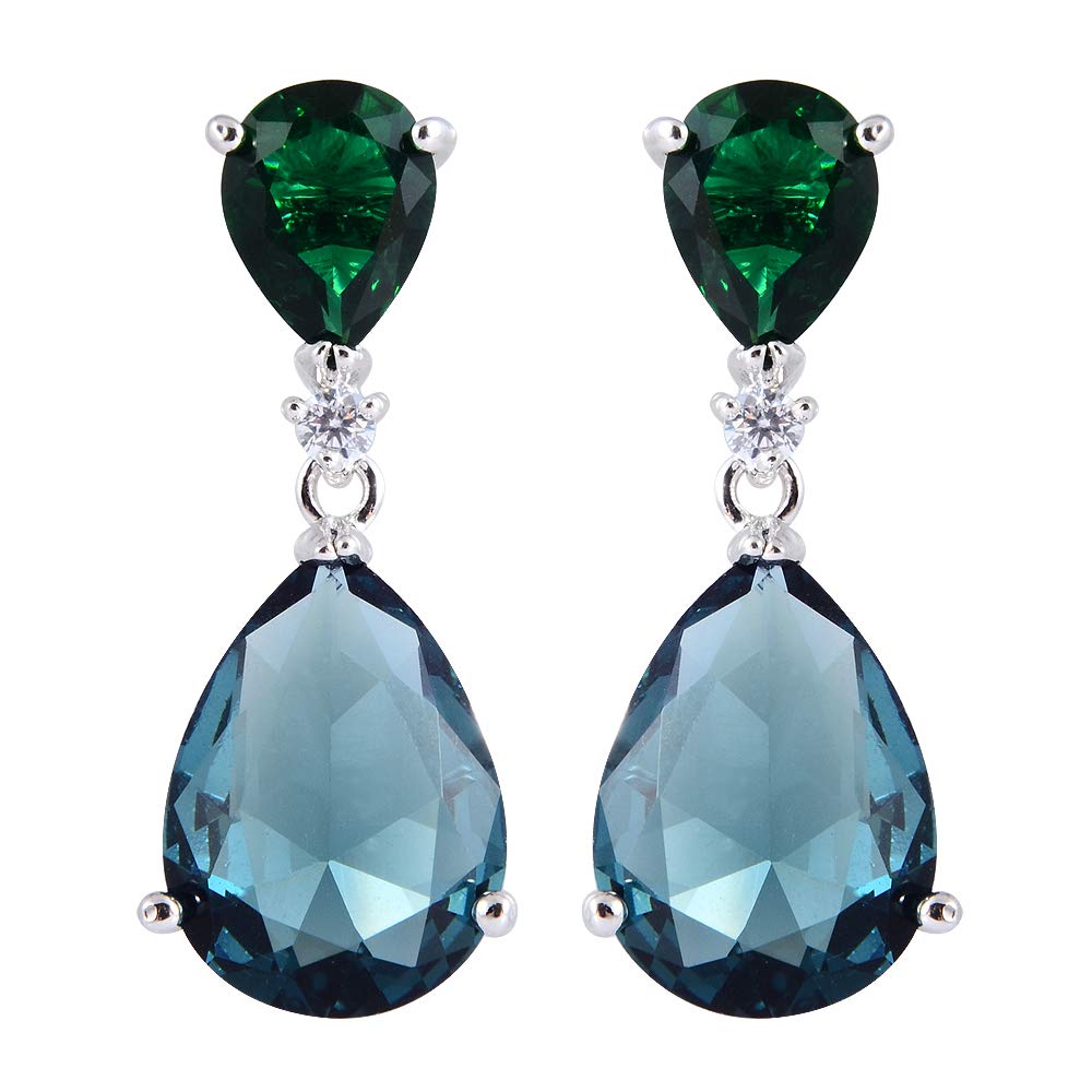 - [Metal and Gemstones]: Environmentally friendly brass (NICKEL FREE) with White Gold Plated. Simulated Blue Sapphire are used. Main gemstone size is 15mmx11mmx2