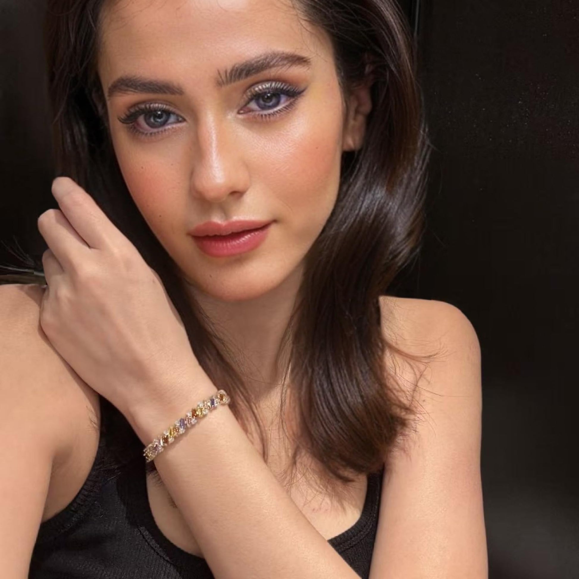 RIZILIA Prism Tennis Bracelet for Women with Tapered Baguette Cut CZ Simulated Diamond Multi Colors Birthstone in 14K Yellow Gold Plated, 7 + 1 inch Bracelet Extender