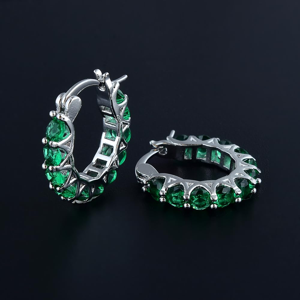 - [Metal and Gemstones]: Environmentally friendly brass (NICKEL FREE) with 18K White Gold Plated. Simulated Green Emerald [May Birthstone] are used. Main gemstone size is 3mmx3mmx22.