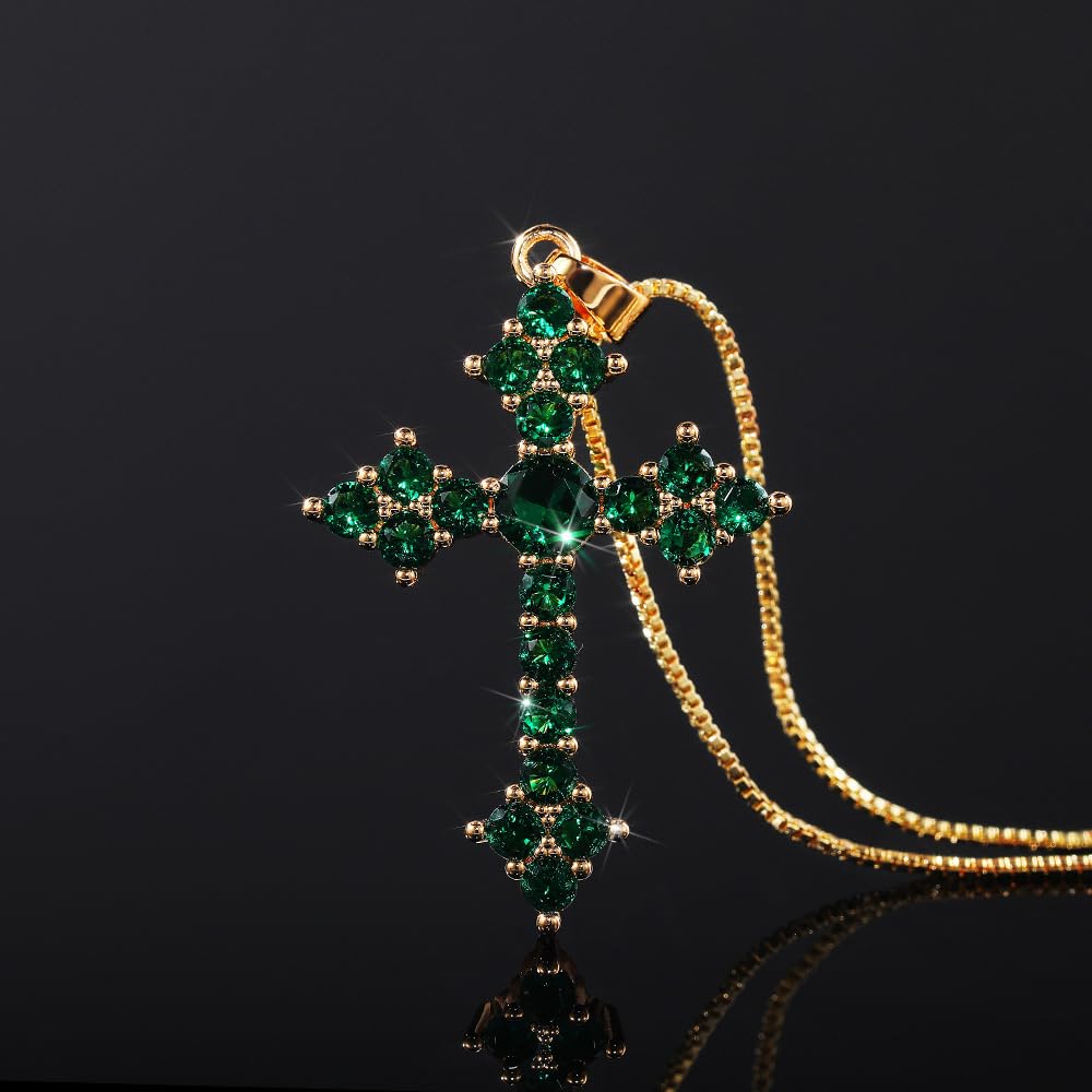 RIZILIA 18K Yellow Gold Plated Women's Cross Necklace, Round Cut CZ [Multiple Colors Available] Cross Pendant Necklace for Women, Trendy Jewelry Gift for Women