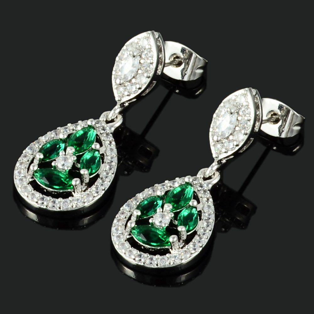 - [Metal and Gemstones]: Environmentally friendly brass (NICKEL FREE) with 18K White Gold Plated. Simulated Green Emerald are used. Main gemstone size is 5mmx2mmx4
