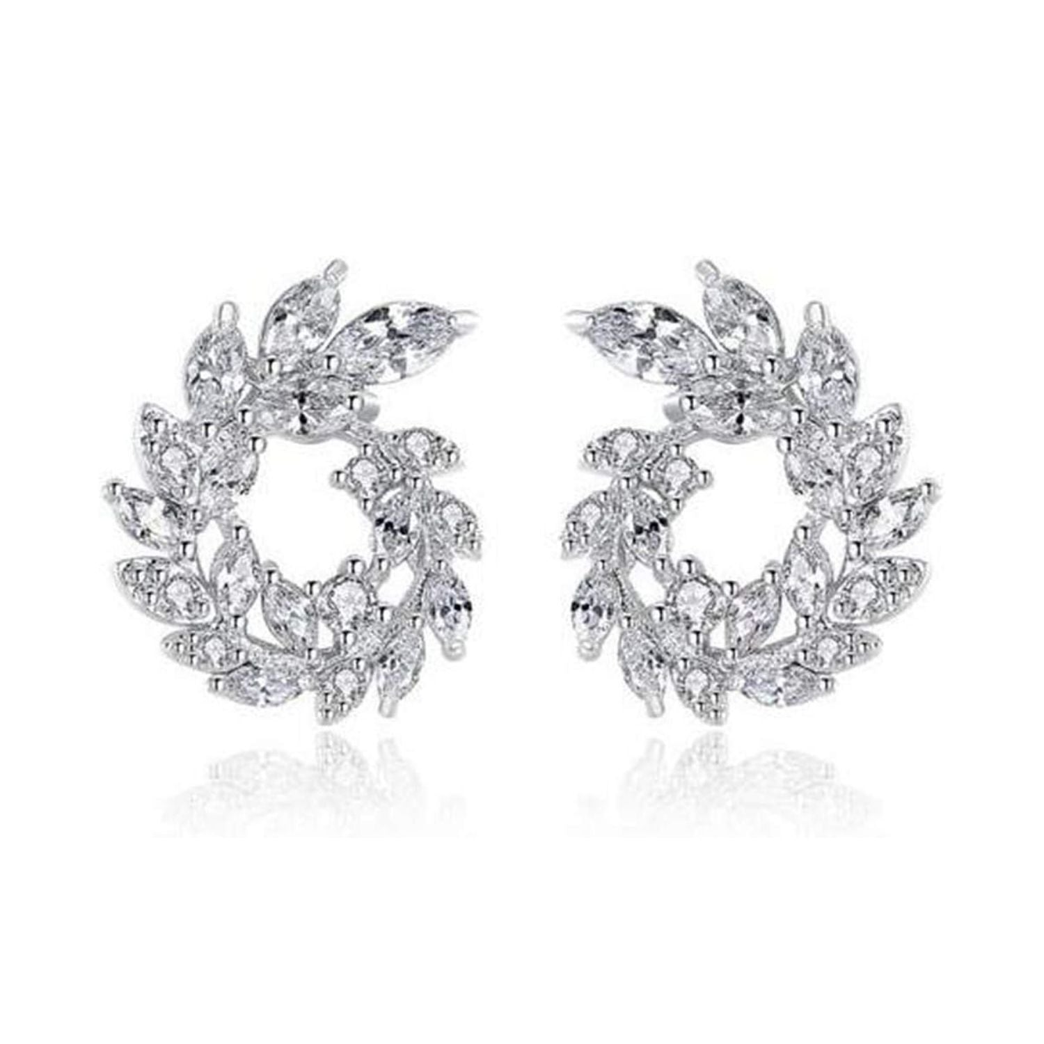 [RIZILIA BLOSSOM] Stud Pierced Earrings with Marquise Cut CZ [White Cubic Zirconia] in White Gold Plated, Simple Modern Elegant