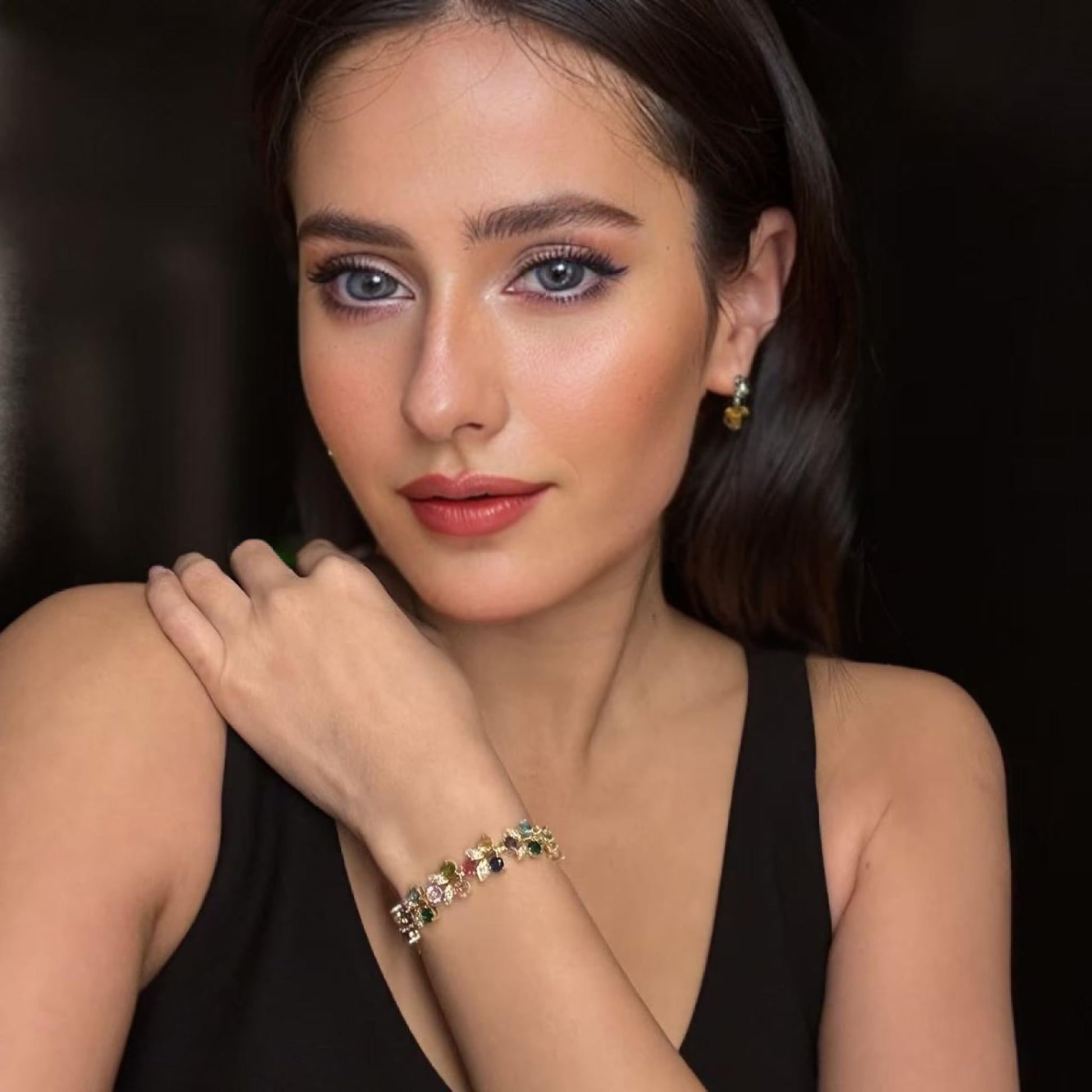 RIZILIA Blossom Tennis Bracelet for Women – 7" Round Cut Multicolor Cubic Zirconia CZ in Gold Plated, Fashion Jewelry Gift