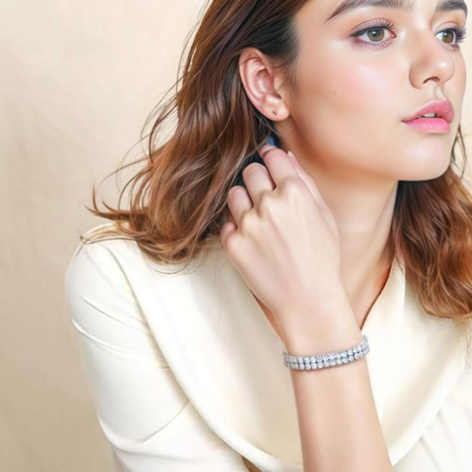 RIZILIA ICONIC White Cubic Zirconia Tennis Bracelet, 18K Gold or White Gold Plated, Multiple Row Designs, 7-Inch