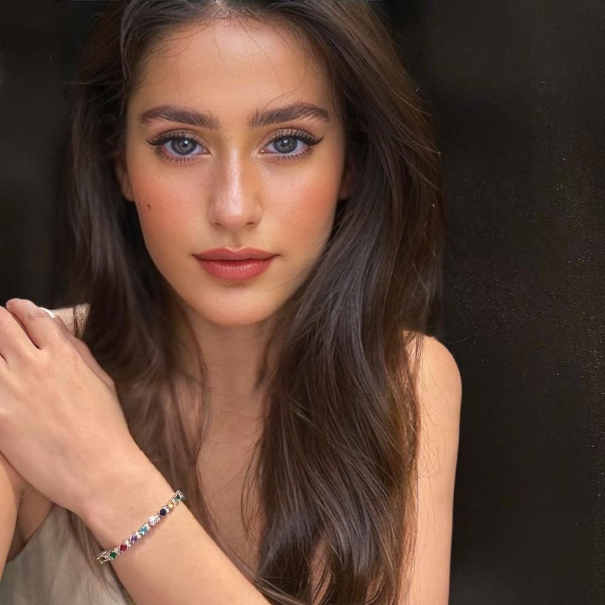 RIZILIA Round Multi-Color CZ Birthstone White Gold Plated Tennis Bracelet, 7"